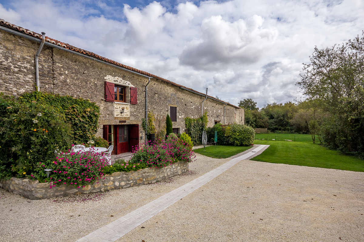 Property has a paved sitting area with table, chairs and parasol, screened by a wall and trellis/fence with climbing flowers. Each gite also has its own allocated BBQ for alfresco dining on those long summer evenings.